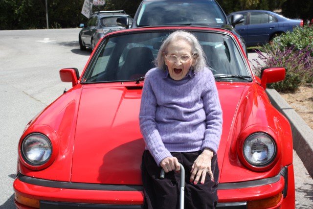 Priscilla Nesbitt at 100 (mph or years), Arriving at Carmel Library Friends Book Sale – Laughing at my shoes